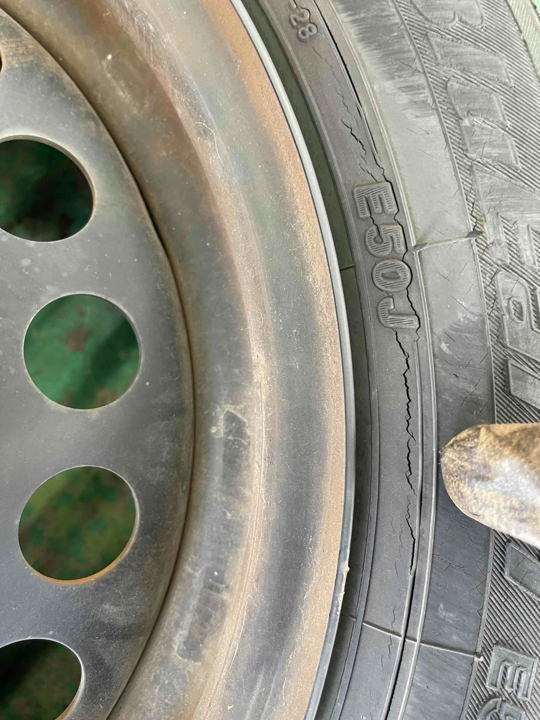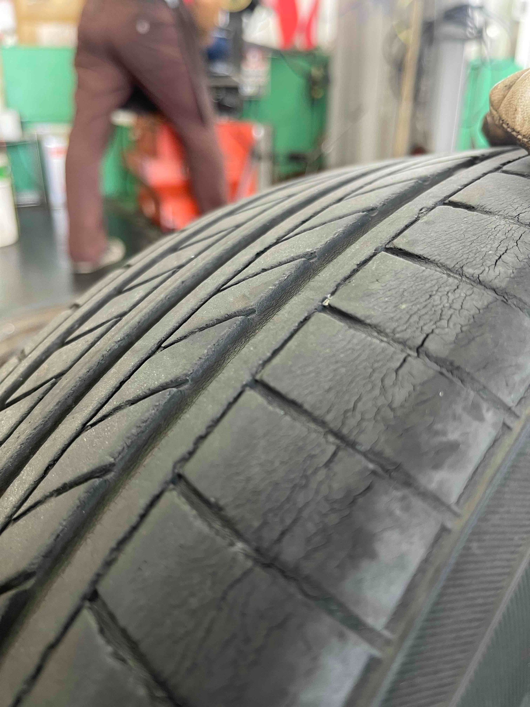 交換前のタイヤは7年経過しており、各所にひび割れが見られました。