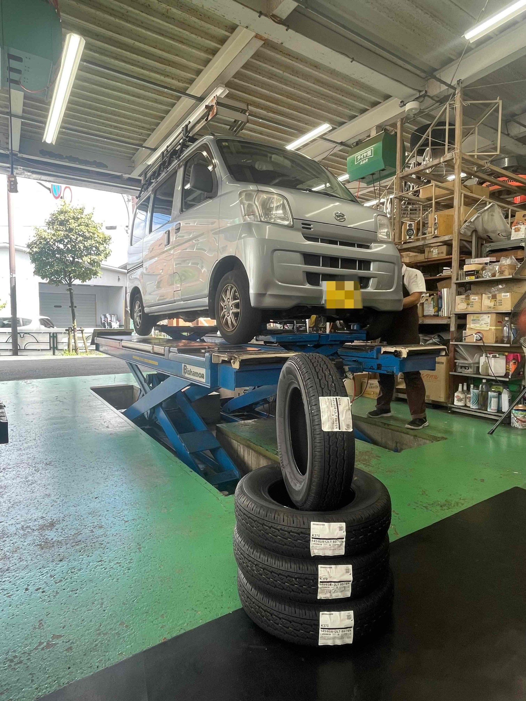 さて、本日は働く車シリーズダイハツ ハイゼットのタイヤ4本交換からスタートです。