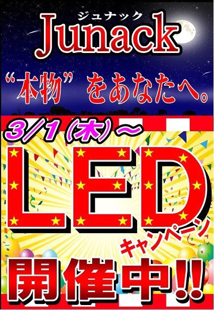 LEDキャンペーン大盛り上がり! ポスト 2018年3月11日 皆さんこんばんは! 今日も遅くなりましたっ(’-’) 月初から開催されました JunackLEDキャンペーン! お陰様で大盛り上がりです! 当グループ全店開催中! お近くの店舗まで! おまちしておりまーす! 担当:伊原