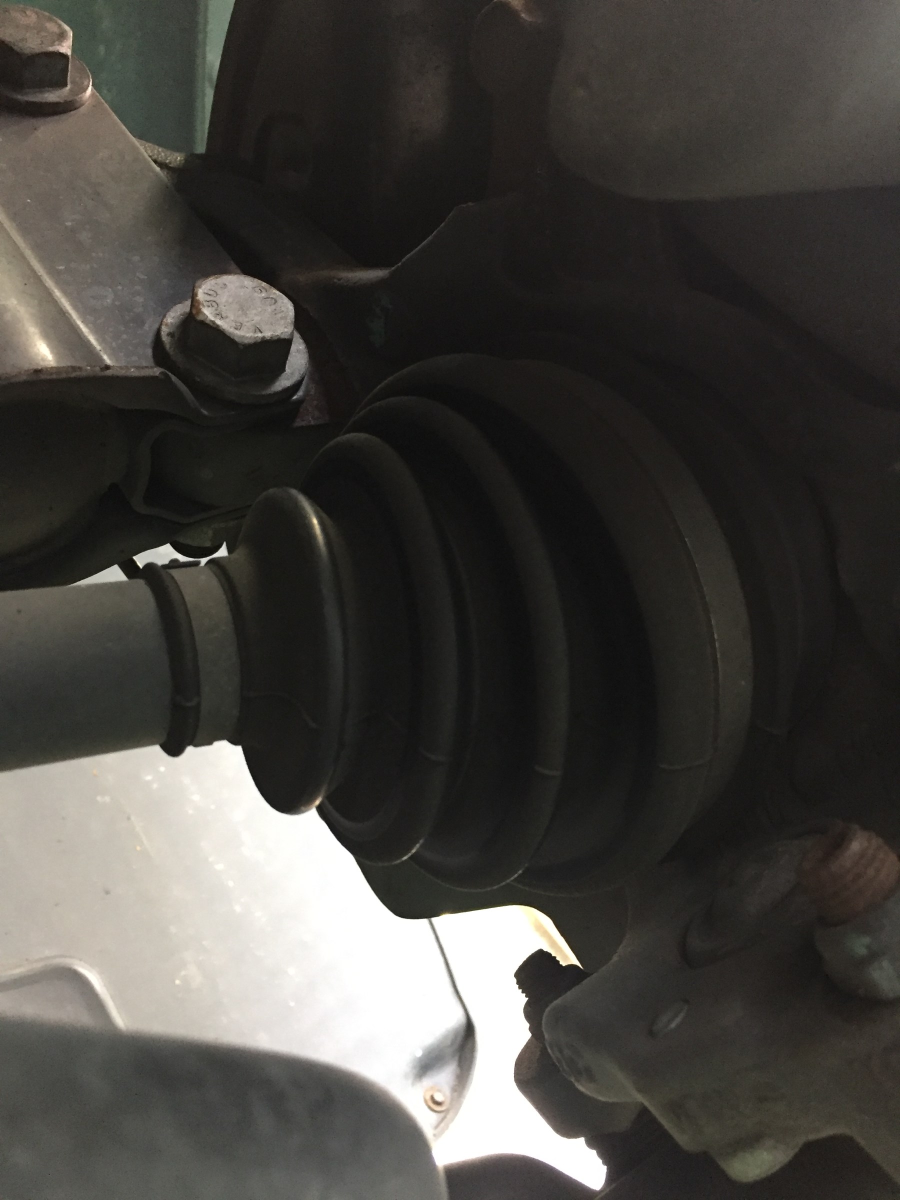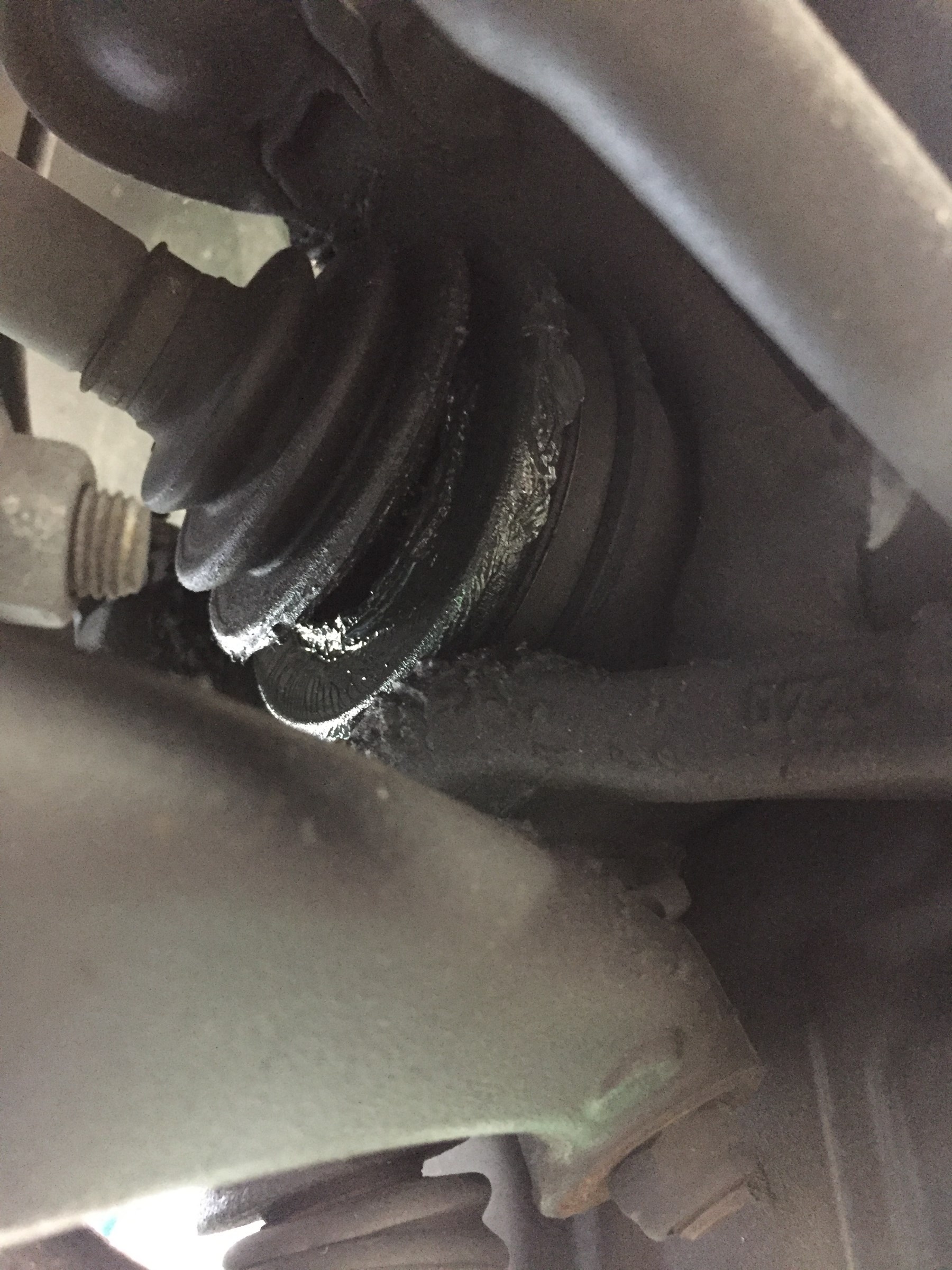 ドライブシャフトブーツが破れて、中のグリスが飛び出ていました。