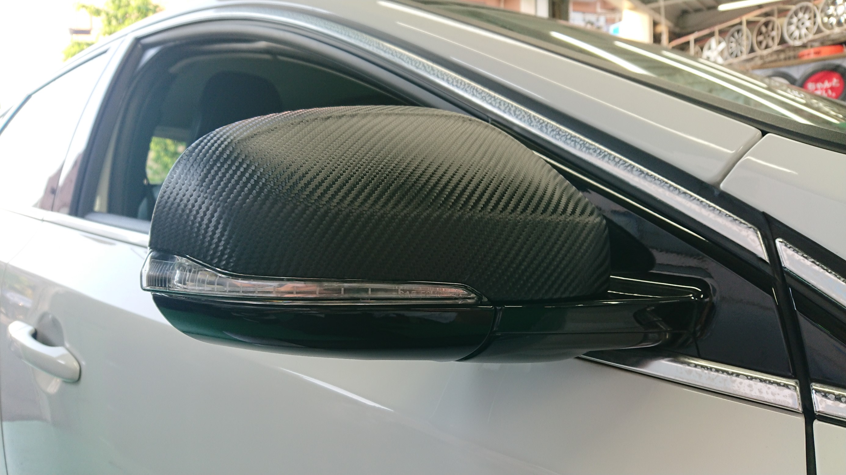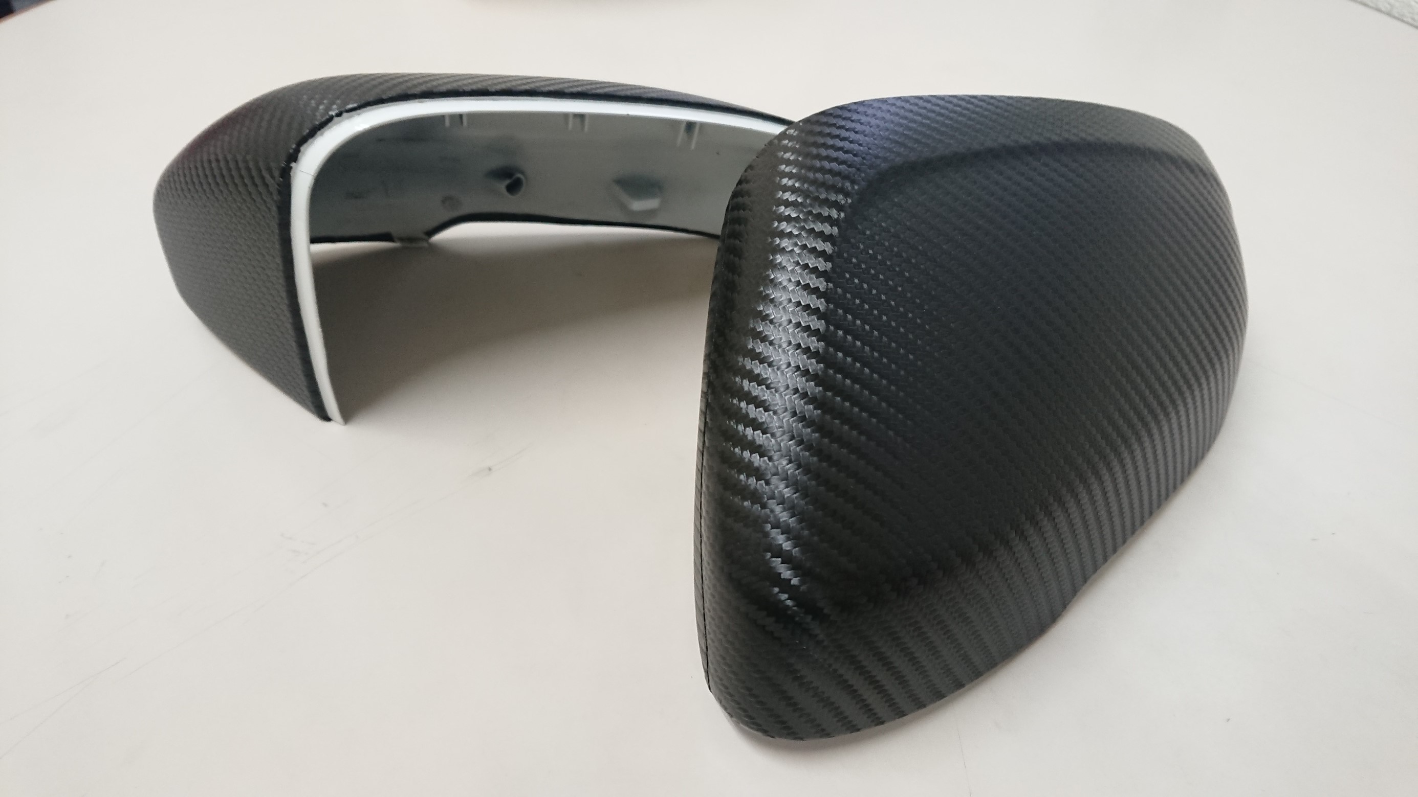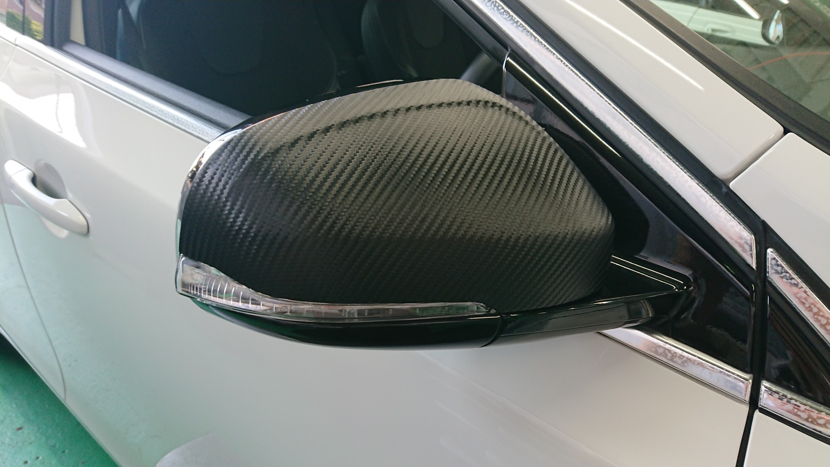 このドアミラーの白いカバー部分のみカーボンシートを施工させて頂きます。