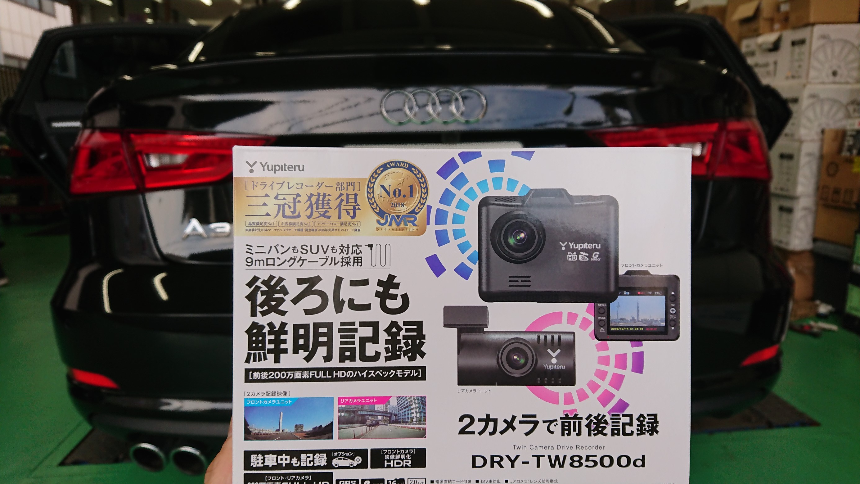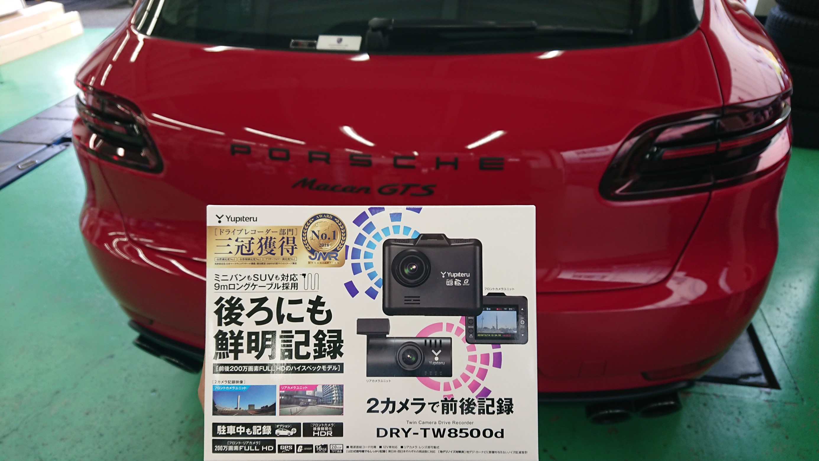 本日はこちらの輸入車2台にユピテルの2カメラ前後ドラレコ