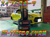 こんにちは(^O^)/ 先日、Y様のスイフトスポーツがタイヤ交換でご来店されました。 今回も、RE-71RSで交換させて頂きました。 いつもご愛顧いただきありがとうございます。 また、気持ちよくガンガン走ってきてくださいね! 安全運転でお願いしますね。 Y様いつもご来店頂きありがとうございます。