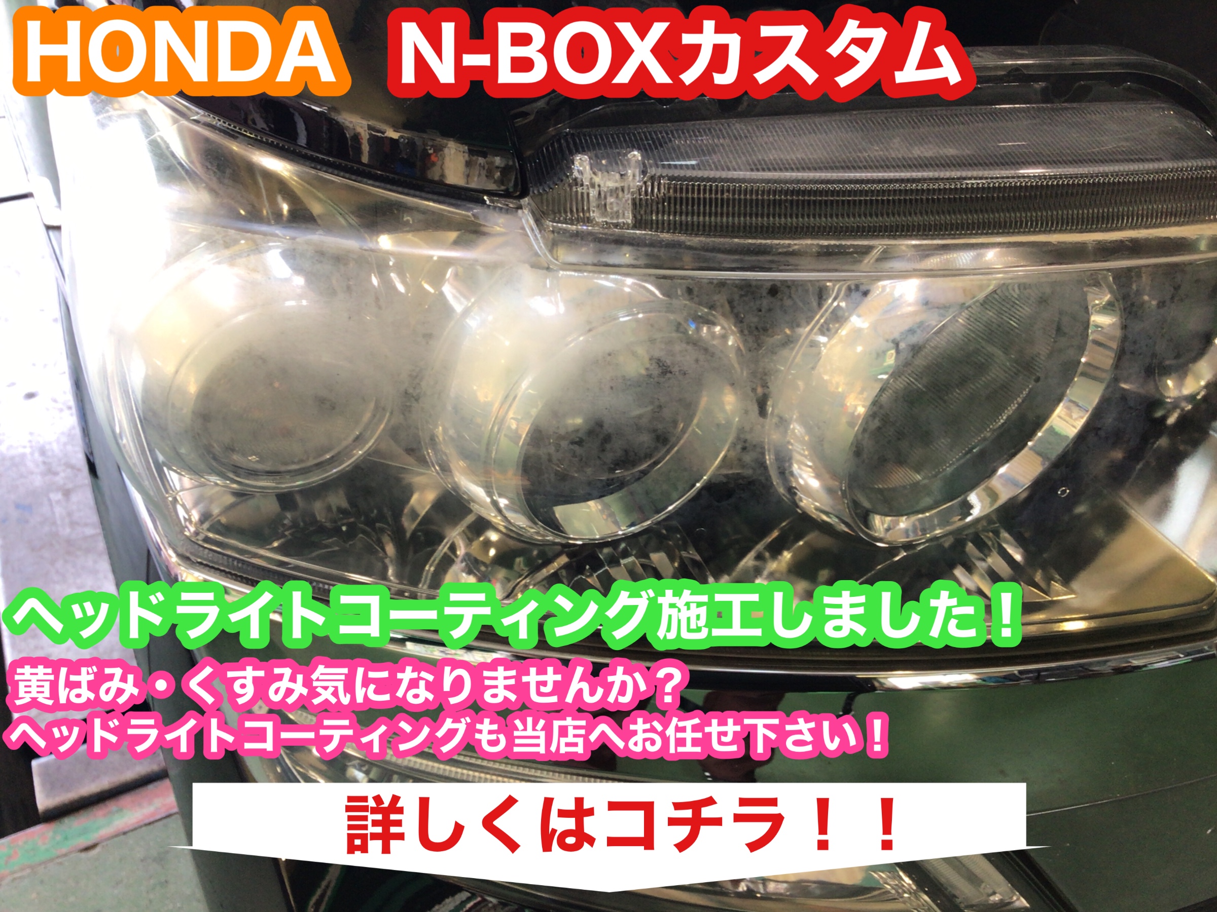 HONDA N-BOXカスタムヘッドライトコーティングです!