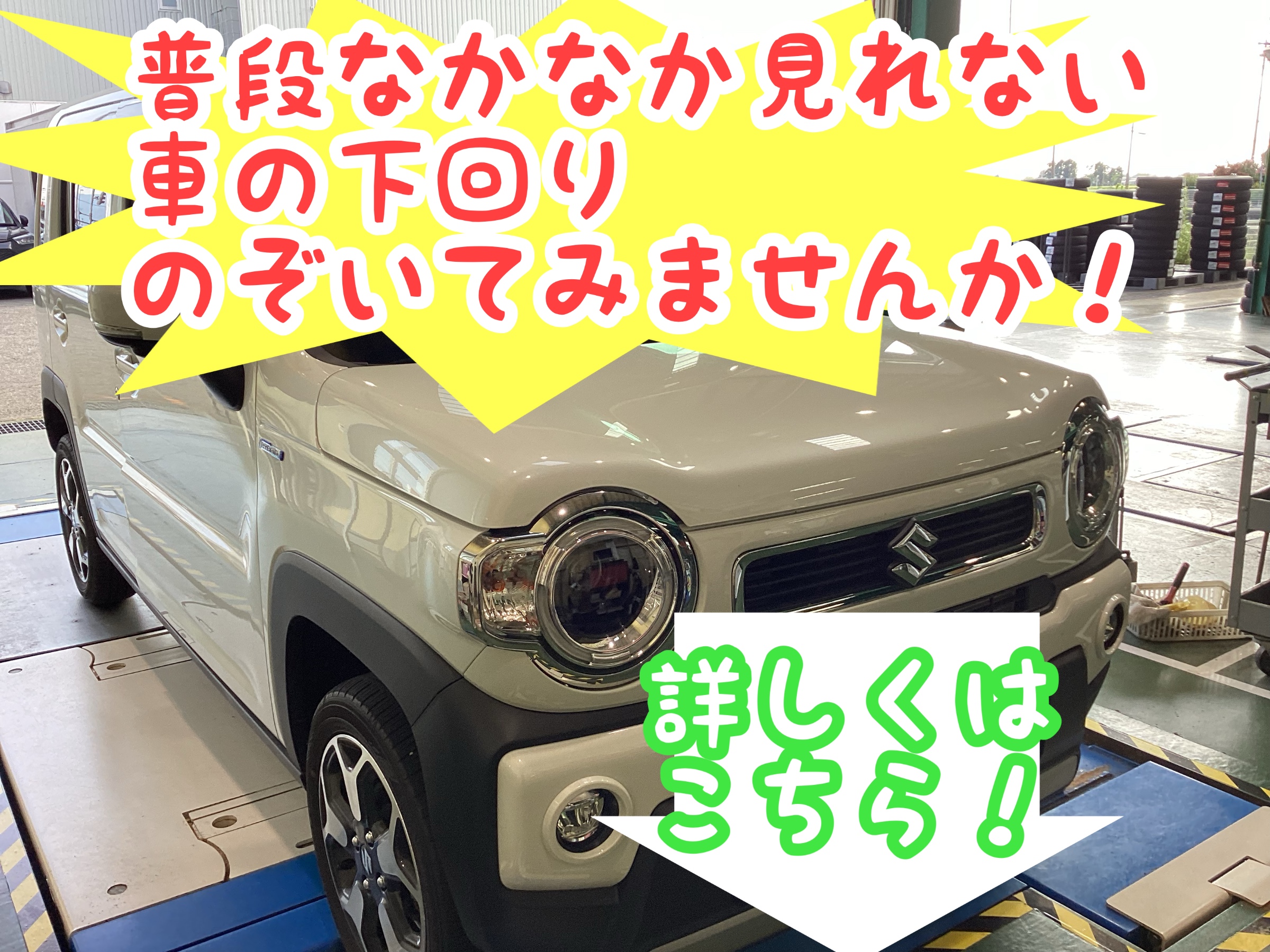 防錆施工は下回り全体から、マフラー、