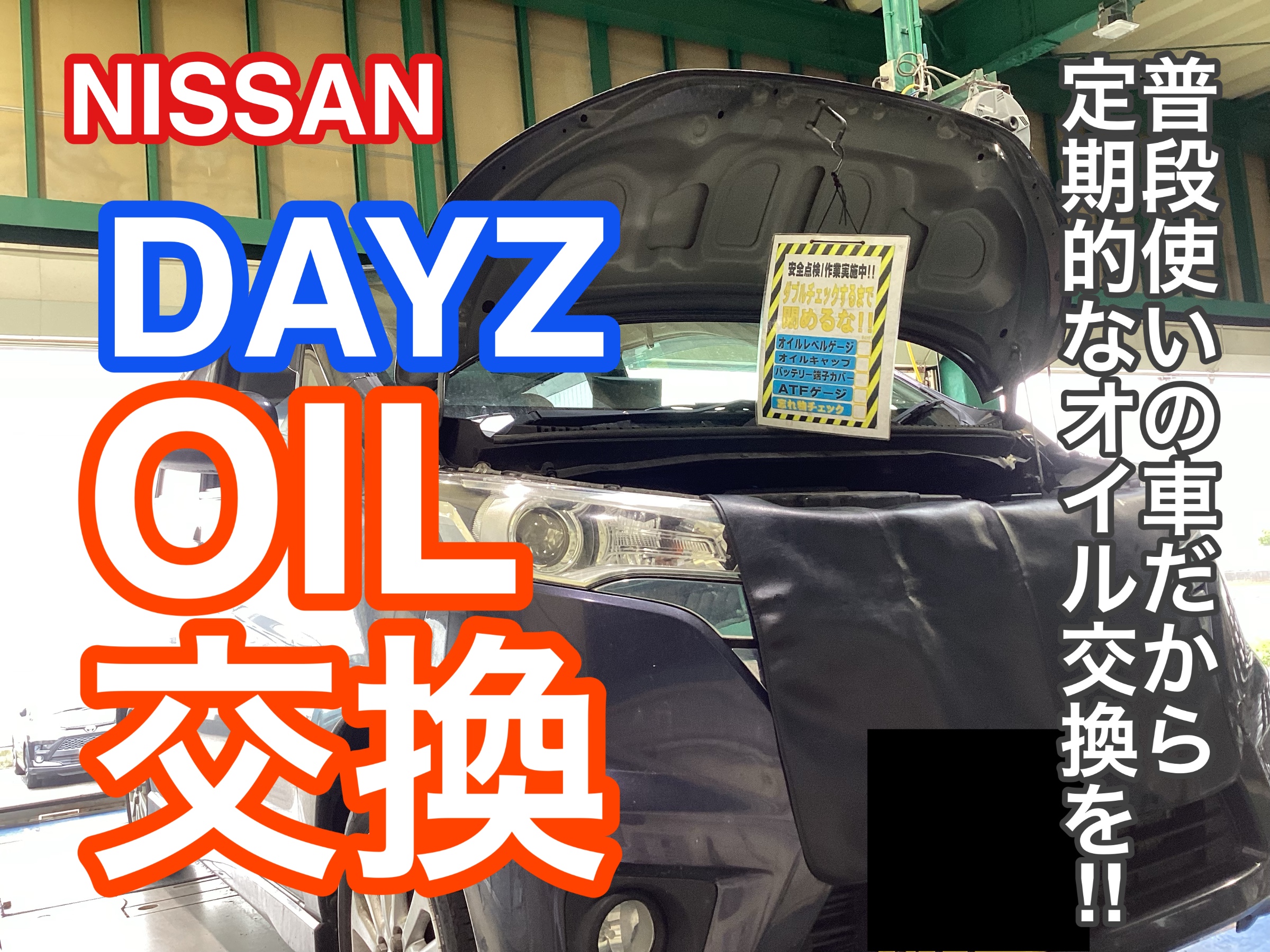 【NISSAN DAYZ】エンジンオイル交換作業事例。走行距離が少なくてもエンジンオイルは定期交換!