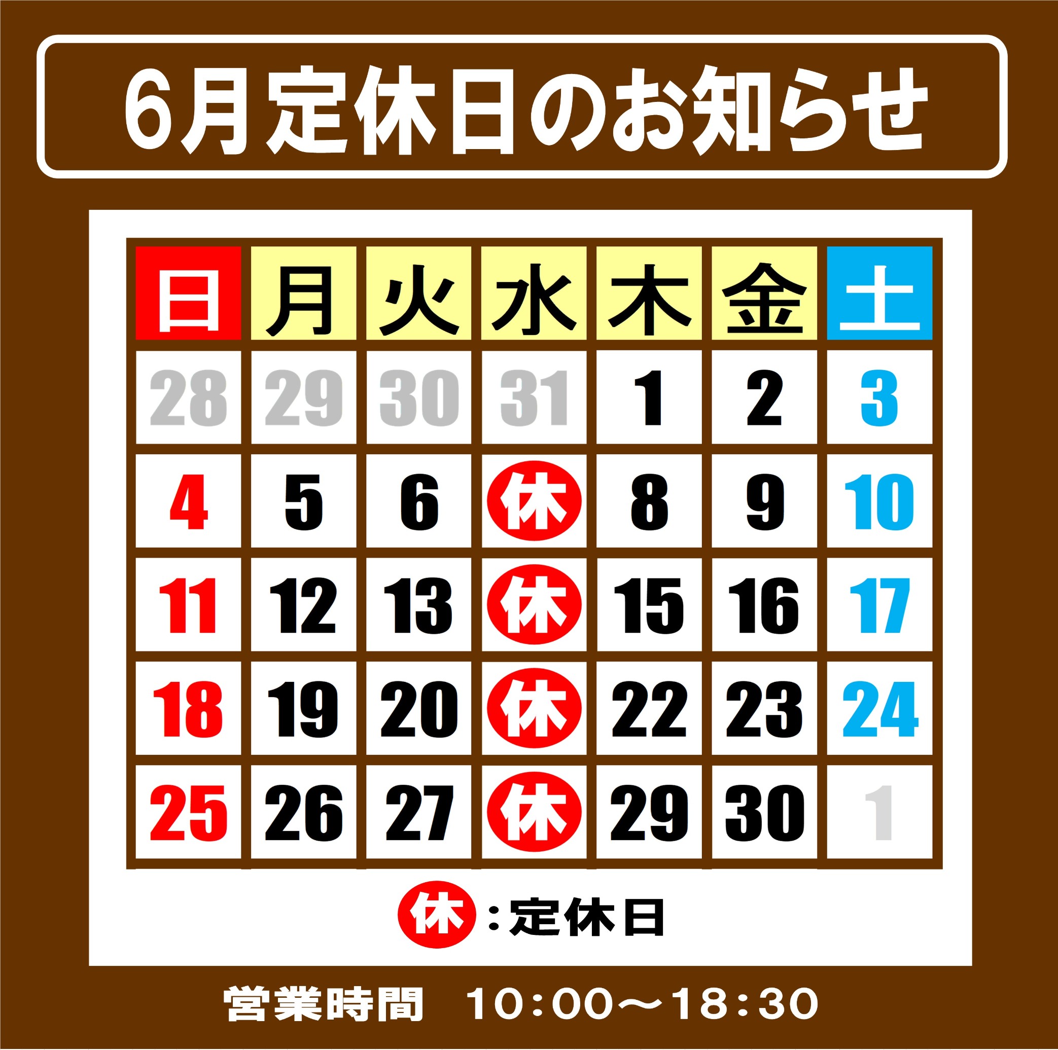 6月定休日のお知らせ