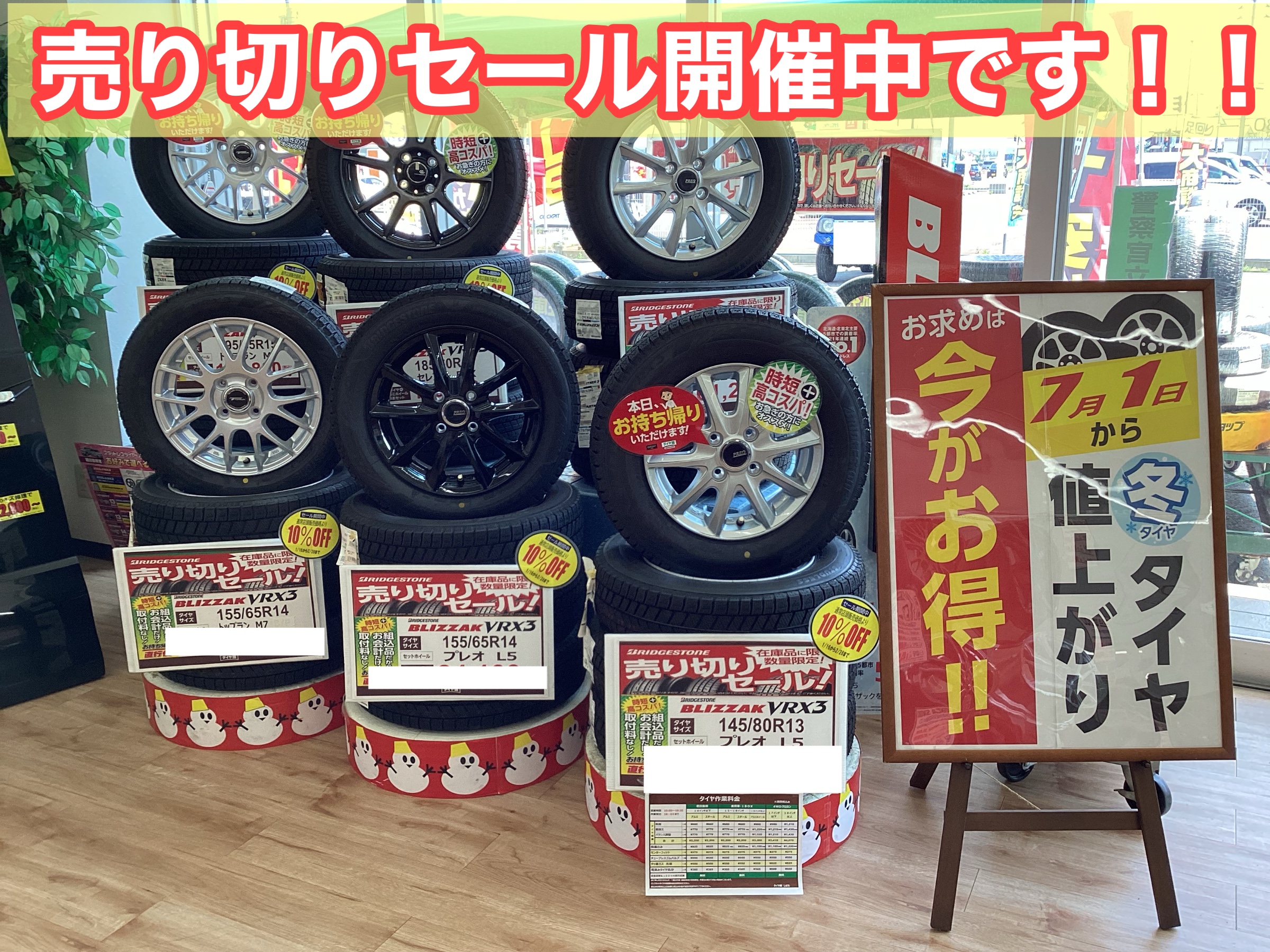 スタッドレスタイヤ・ホイールセット多数あり!『売り切りセール』開催中です! ポスト 2023年6月10日 タイヤ館しばたでは『売り切りセール』を 開催しており店内多数展示中です! ・製造年がチョット前のタイヤ ・モデルチェンジしたタイヤ ・チョット訳ありのアルミホイール ・在庫処分のドライブレコーダー 多数展示しております! スタッドレスタイヤのホイールセットも ご用意しておりますので、 サイズがあえば値上げ前の今がチャンスです! 数に限りがございますので気になった方、 ぜひタイヤ館しばたまでお問い合わせください! タイヤ館 しばた 住所:957-0062新潟県新発田市富塚町3-3-6 電話番号: 0254-27-5131 相談予約 タイヤ点検・安全点検/タイヤ履き替え/オイル交換/その他ピット作業の予約