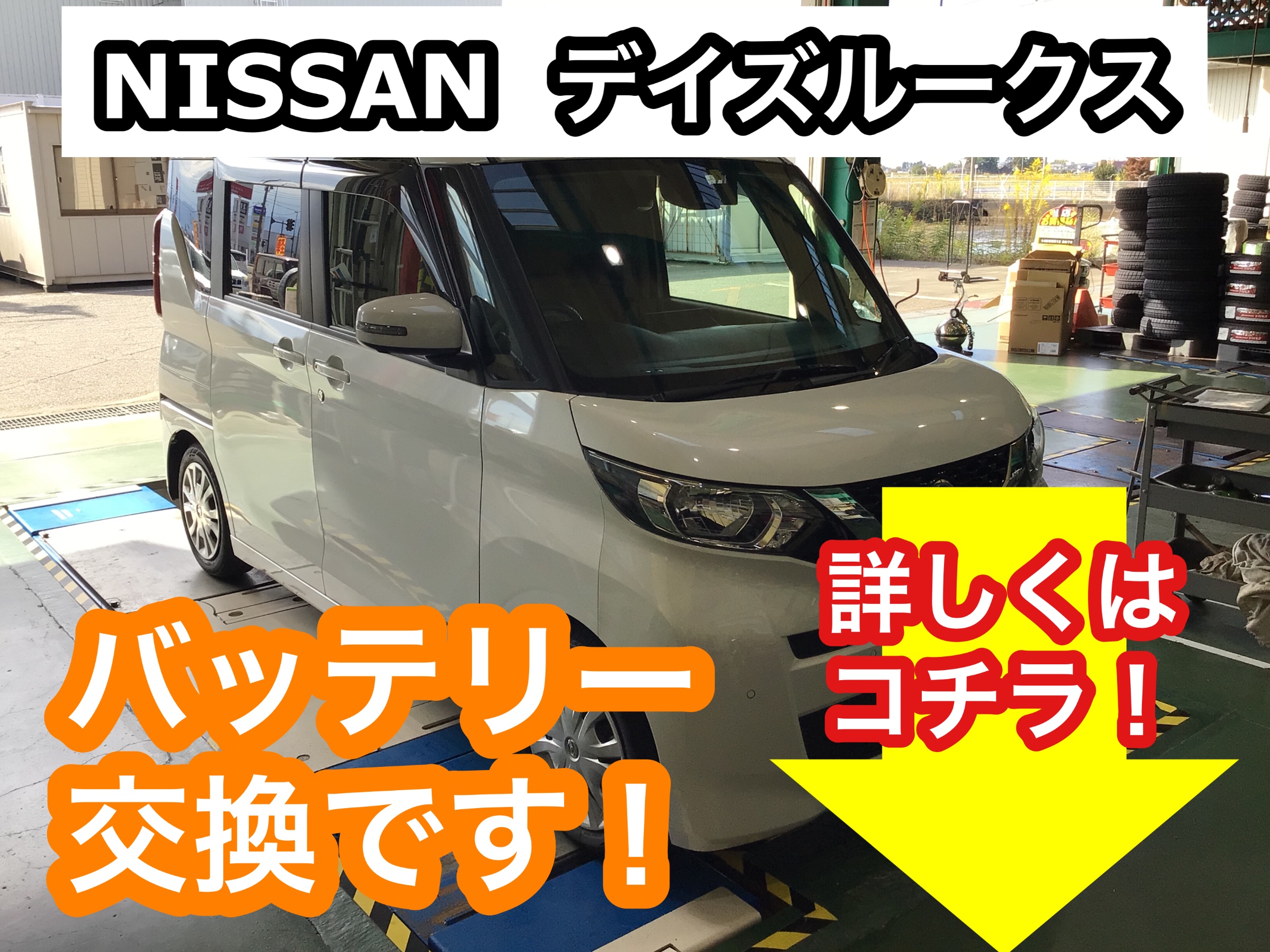 【NISSAN DAYZ ROOX】バッテリーは急に動かなくなることも。気温低下も要因に。点検交換で、安心運転しませんか?