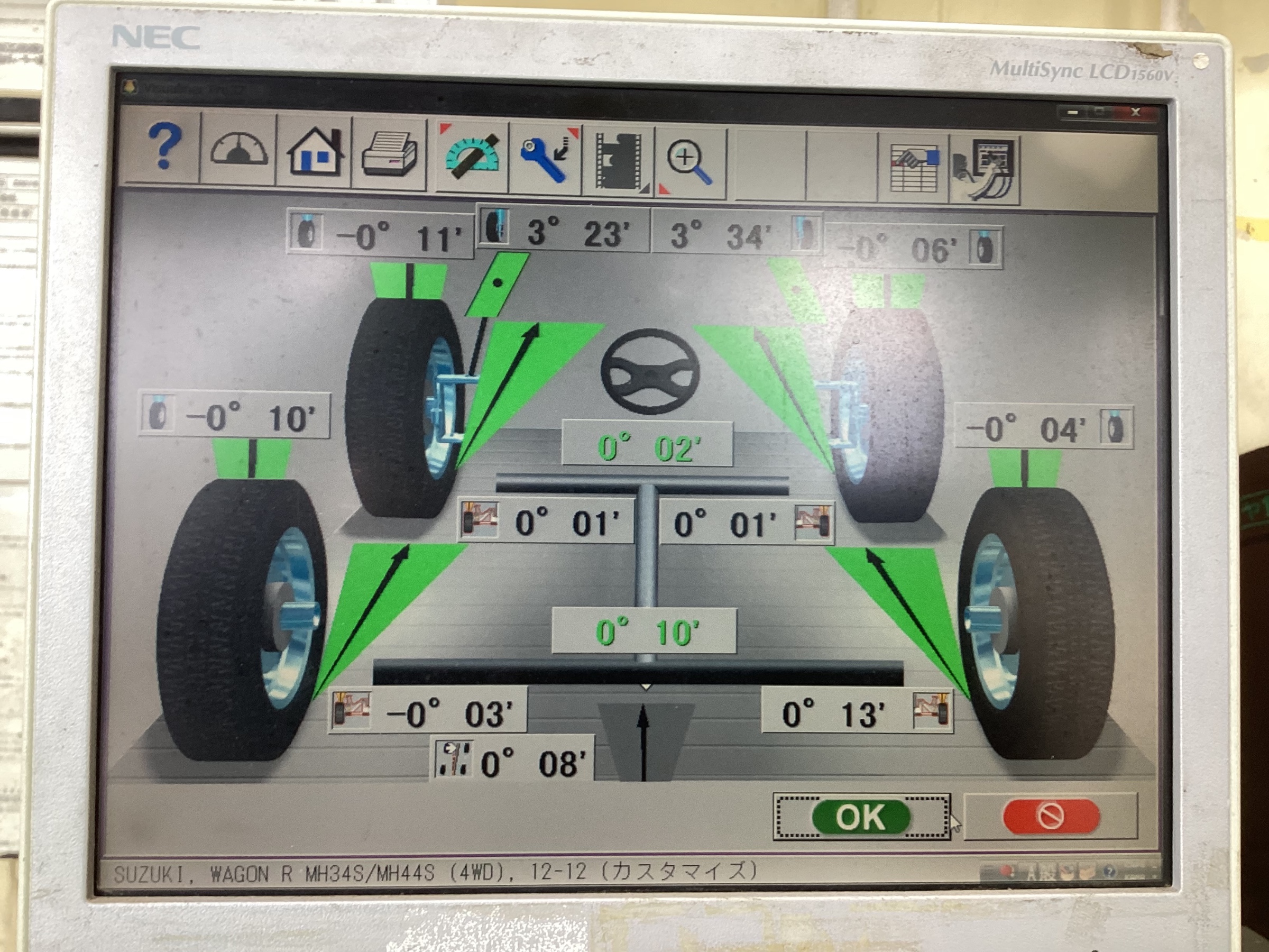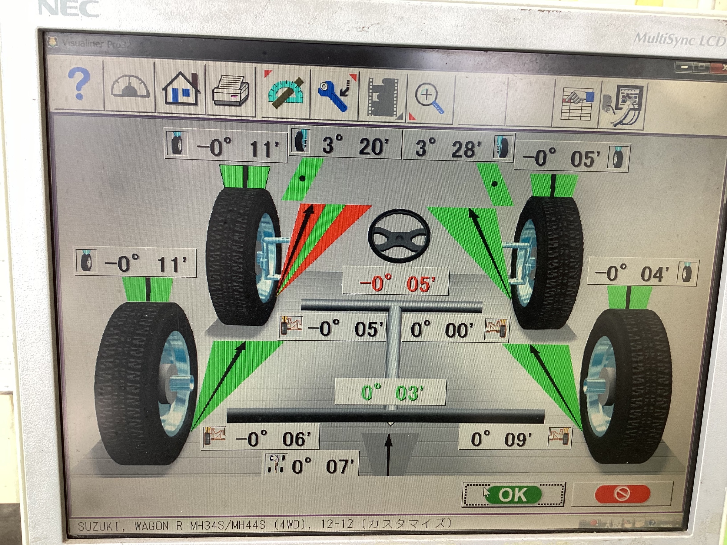 【スズキ ワゴンR】アライメントで冬道に安心感をプラス!タイヤ長持ち!