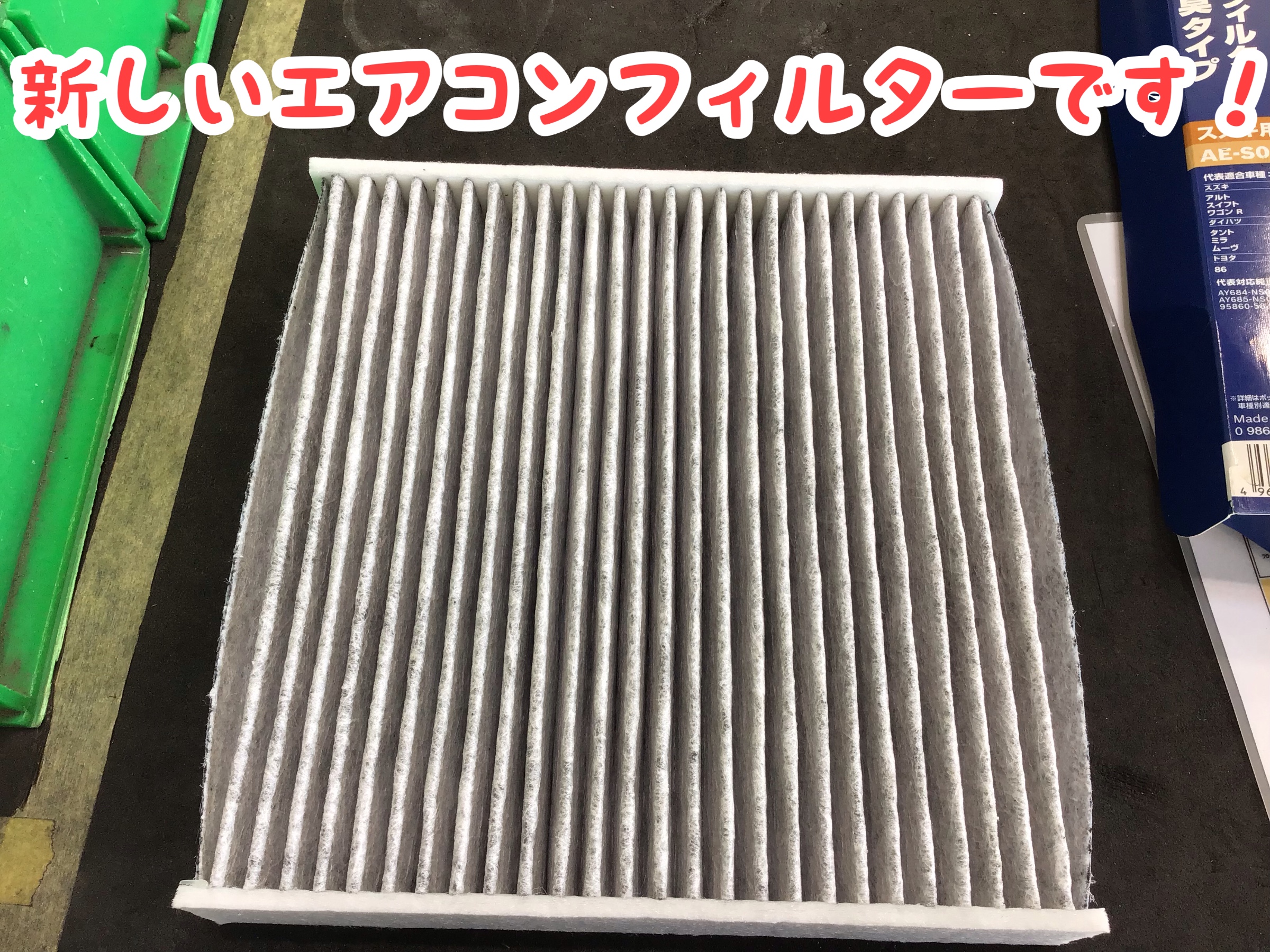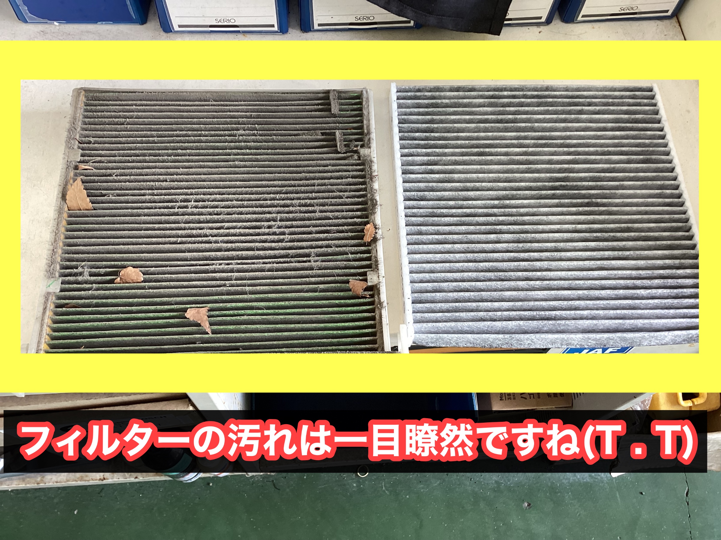 右側が新しいエアコンフィルターです!