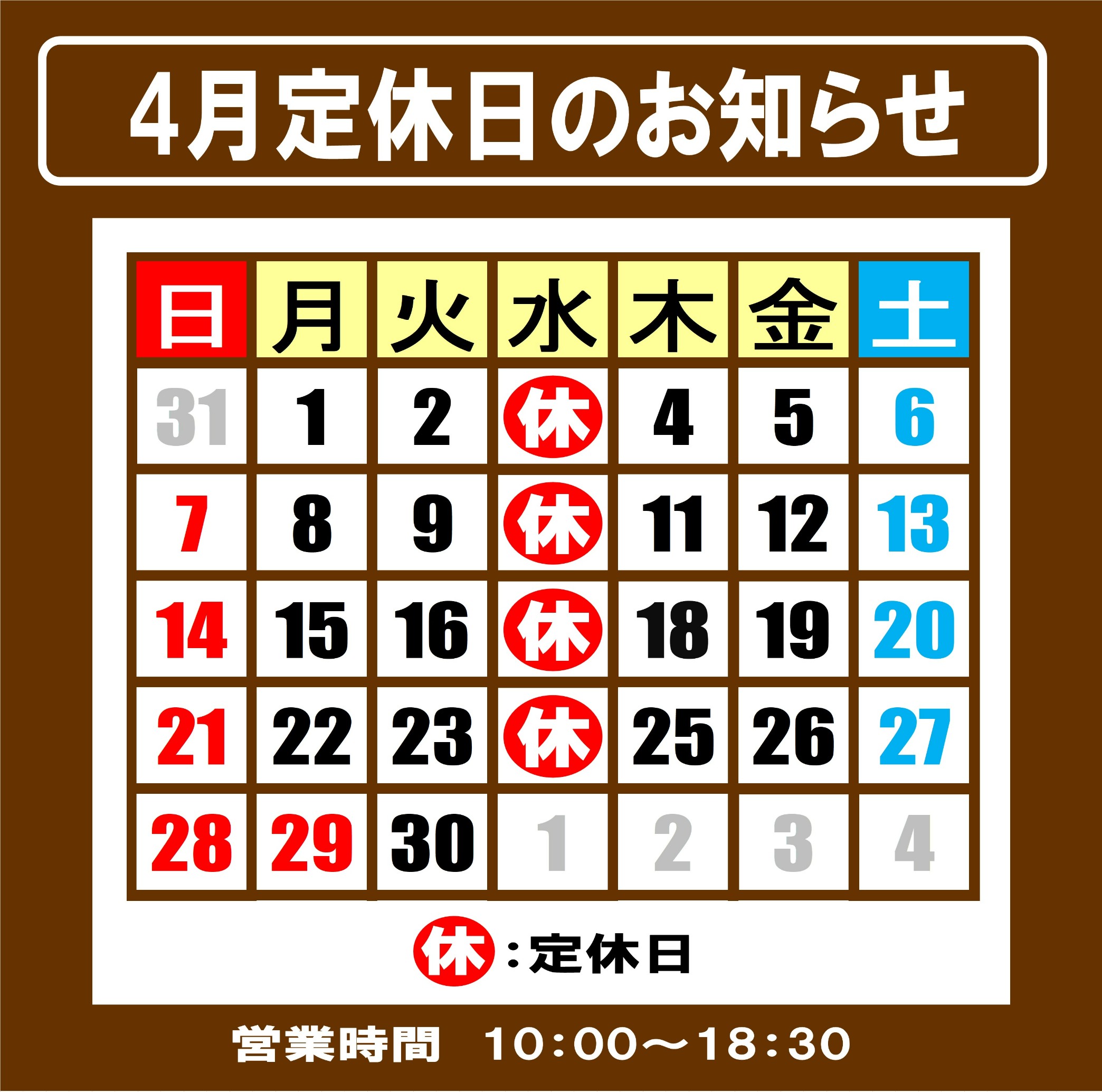 4月の定休日は