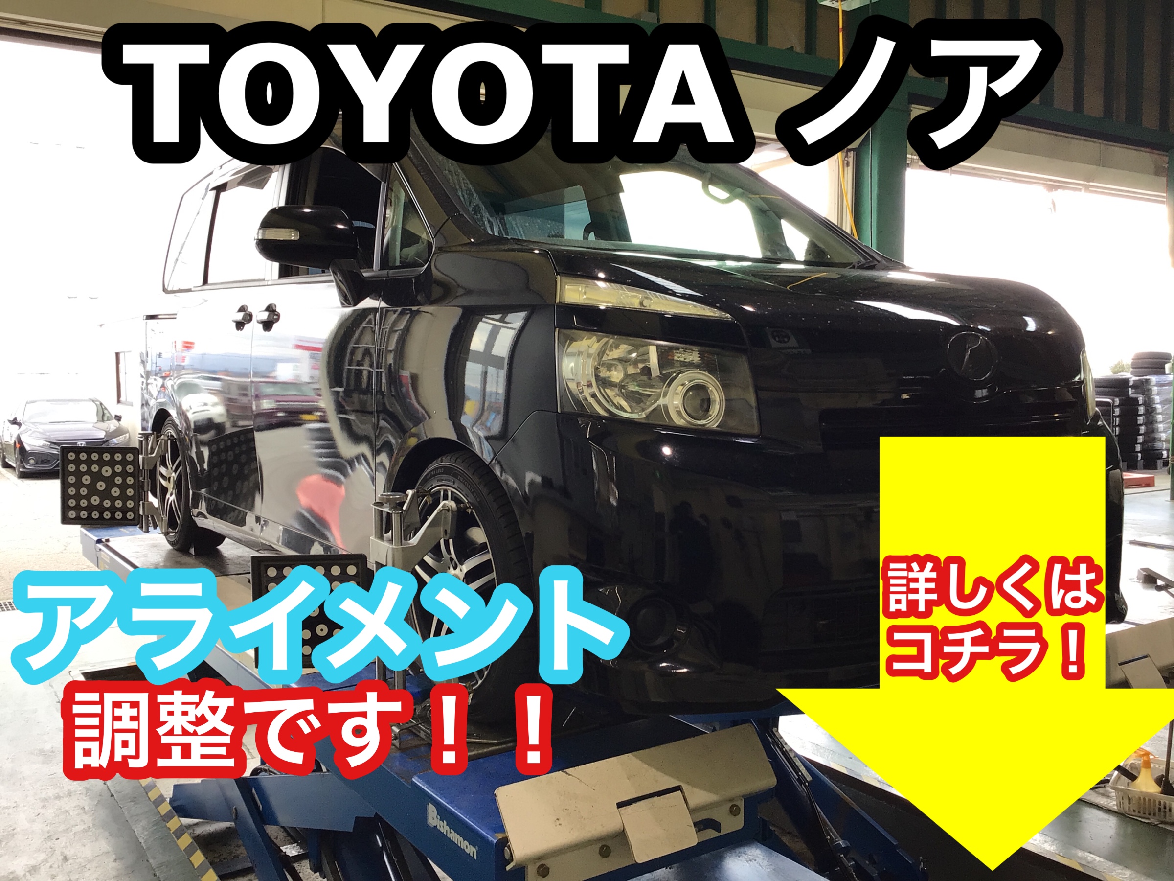 【TOYOTA NOAH】アライメントで、タイヤをより長持ちさせませんか?