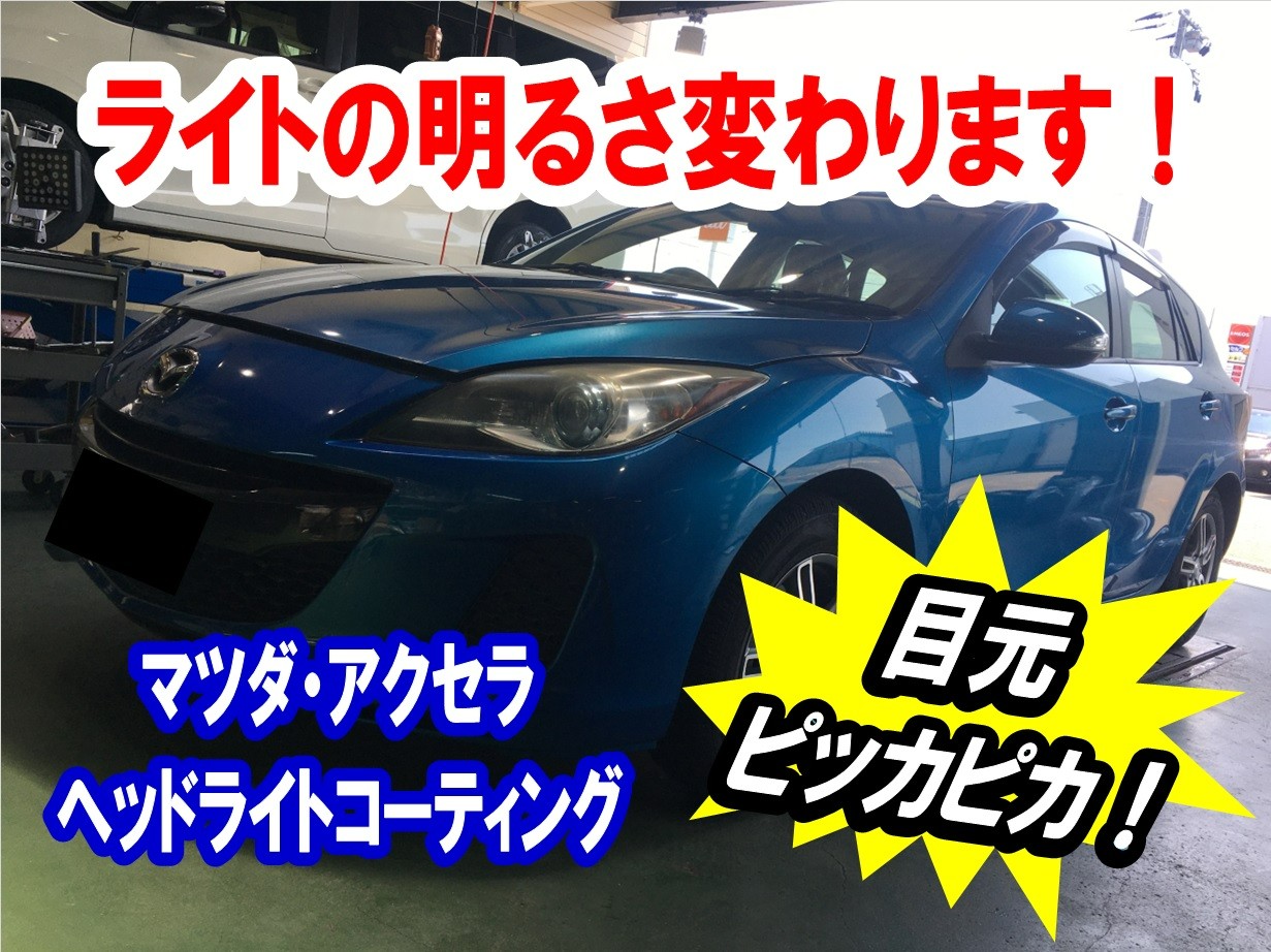 【マツダ:アクセラ/ヘッドライトコーティング】目元ピカピカにしちゃいます!