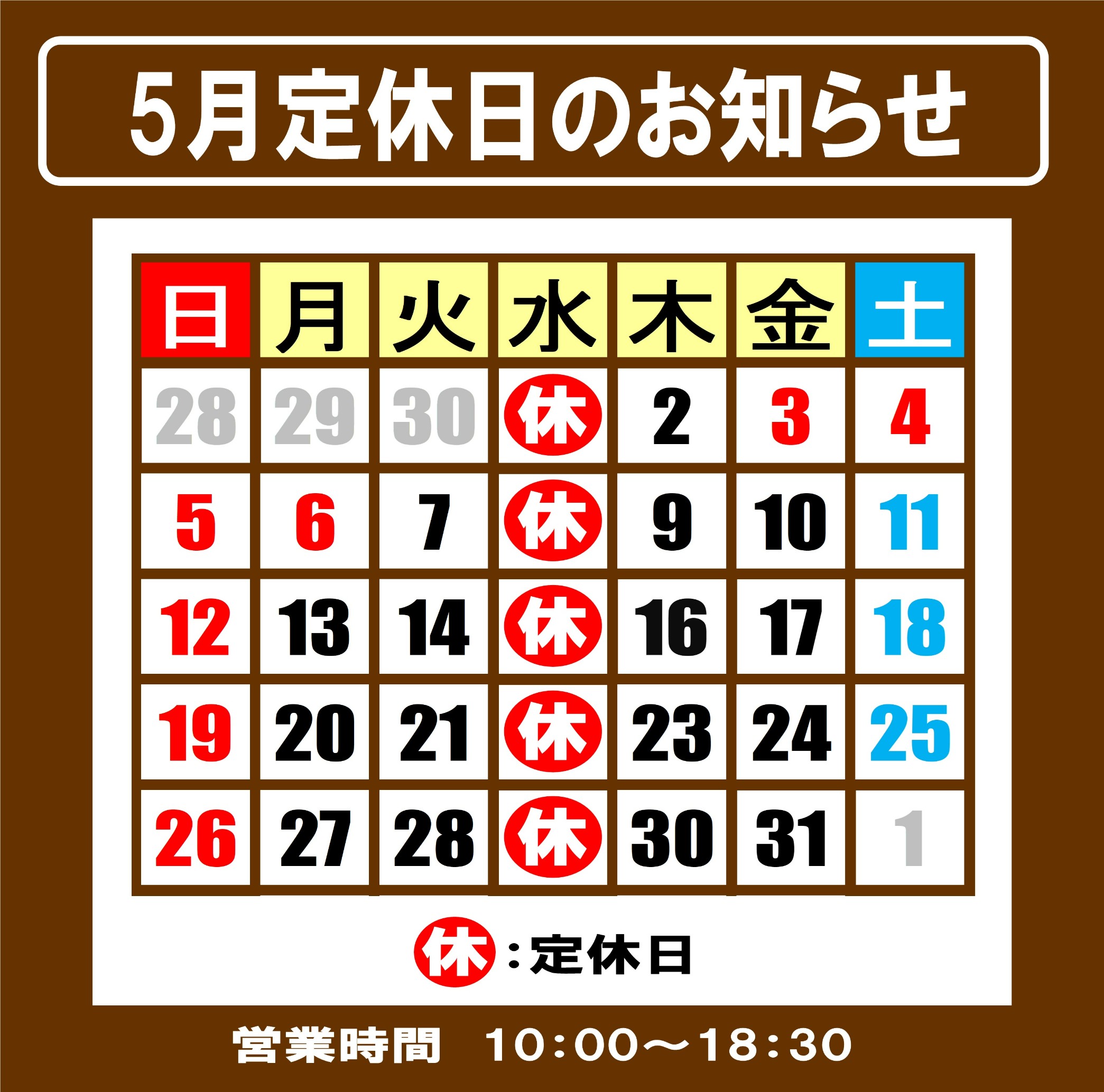 5月の定休日は