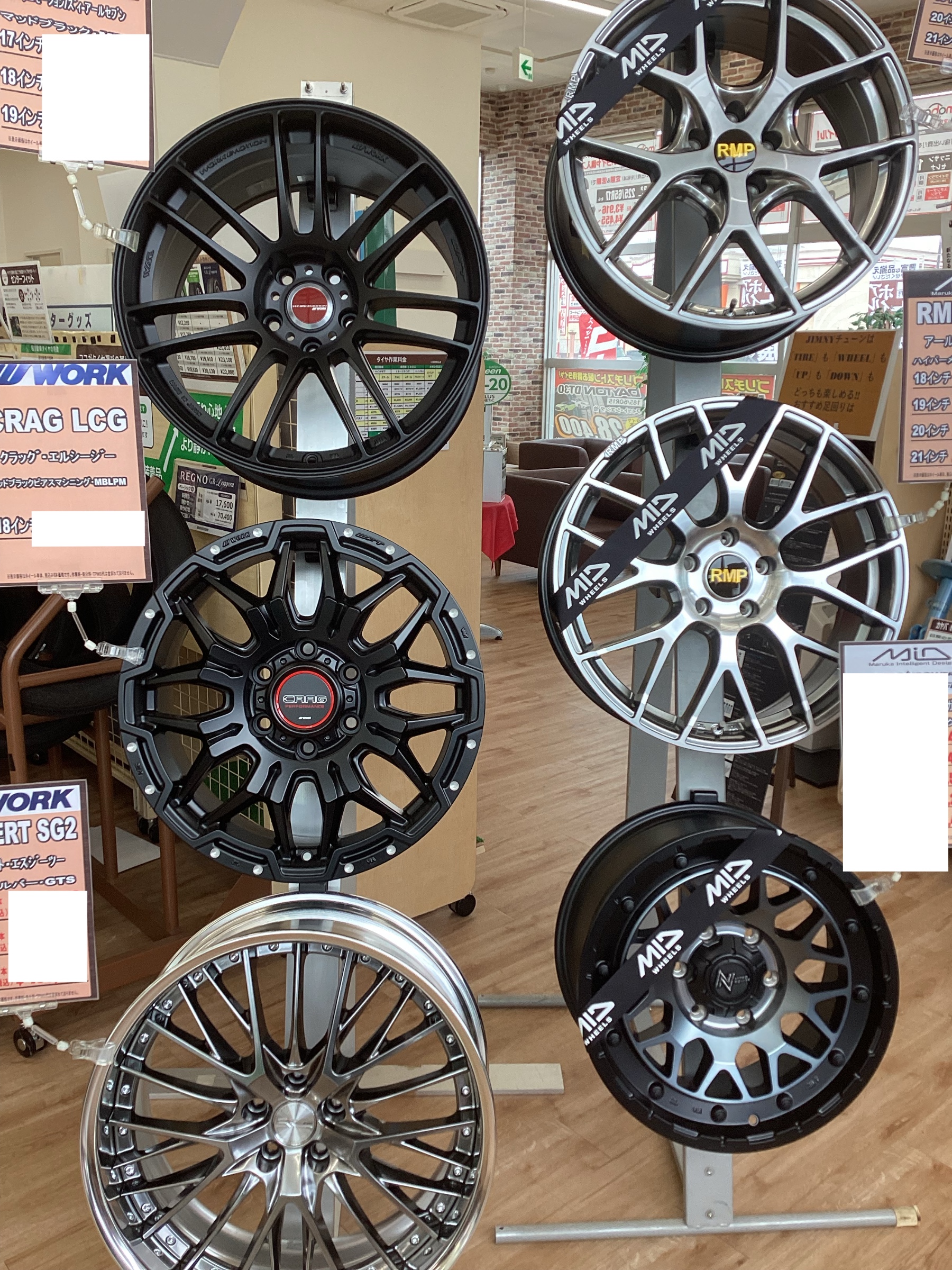新商品ホイールなど大量展示しております!
