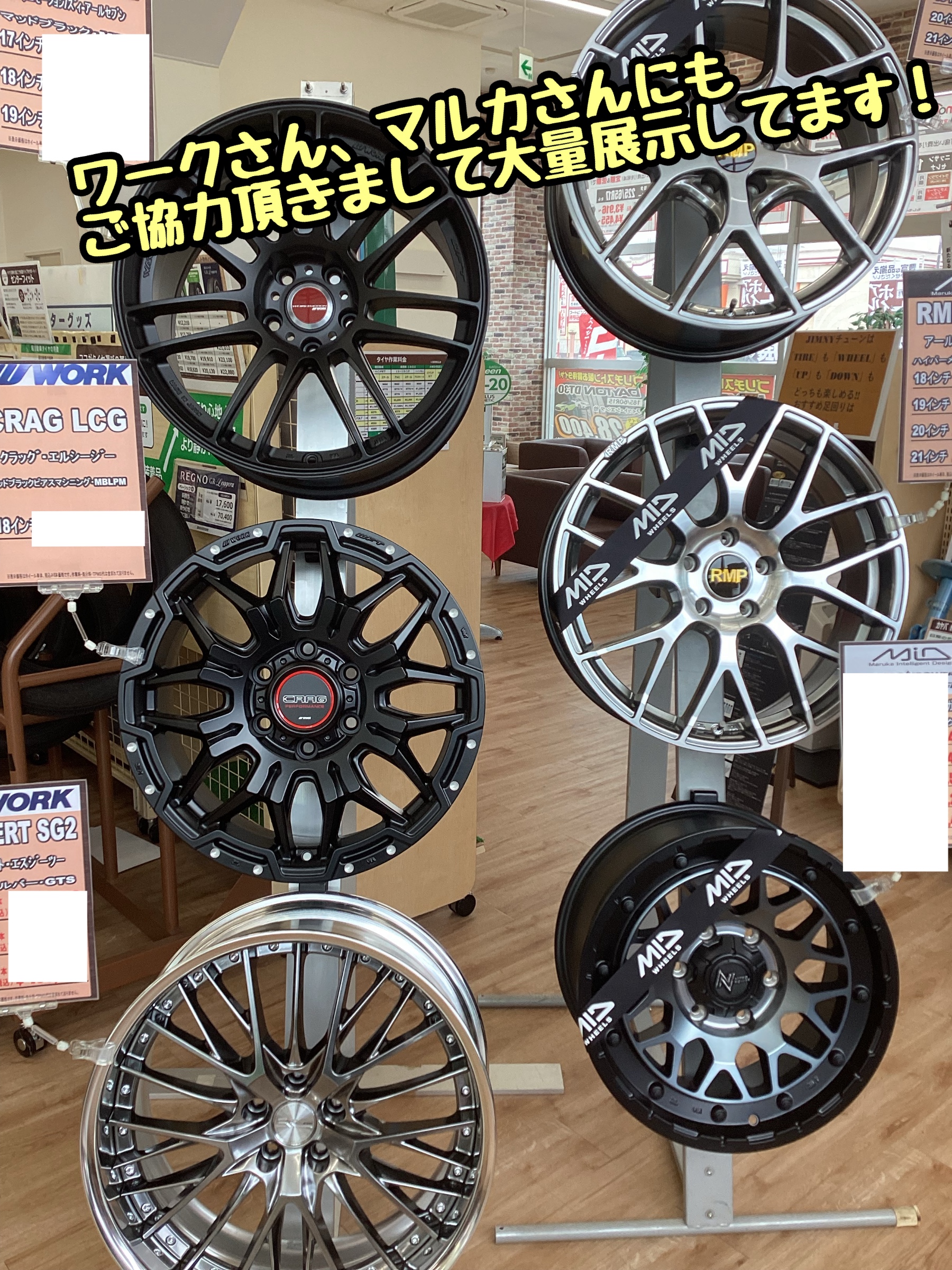 多数ホイールの展示をしております!