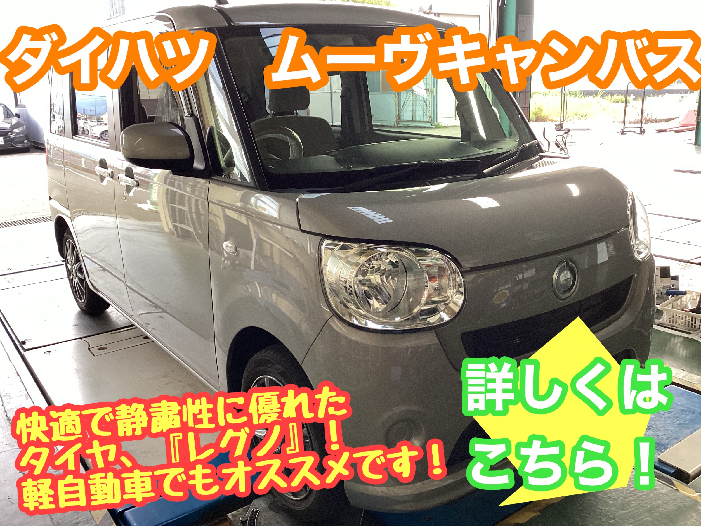 【ダイハツ ムーヴキャンバス】軽自動車でもオススメ快適で静粛性にすぐれたタイヤ『レグノ』です!
