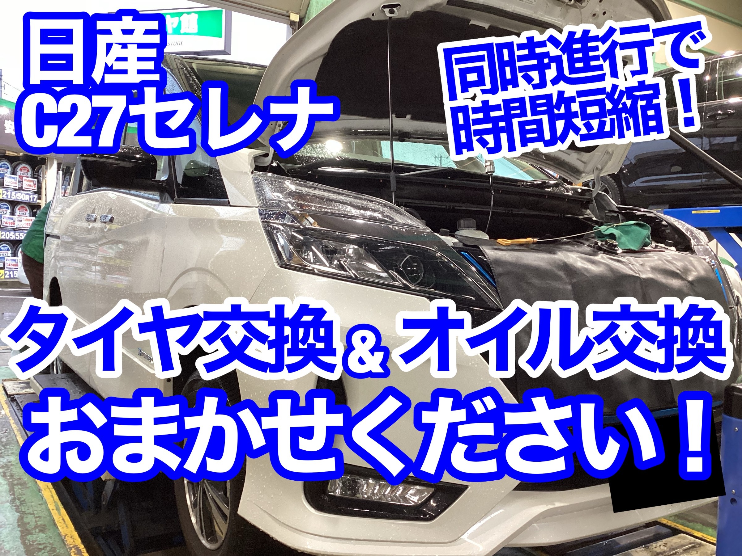 【日産 セレナ】冬タイヤの交換と同時にエンジンオイル交換もお任せください!