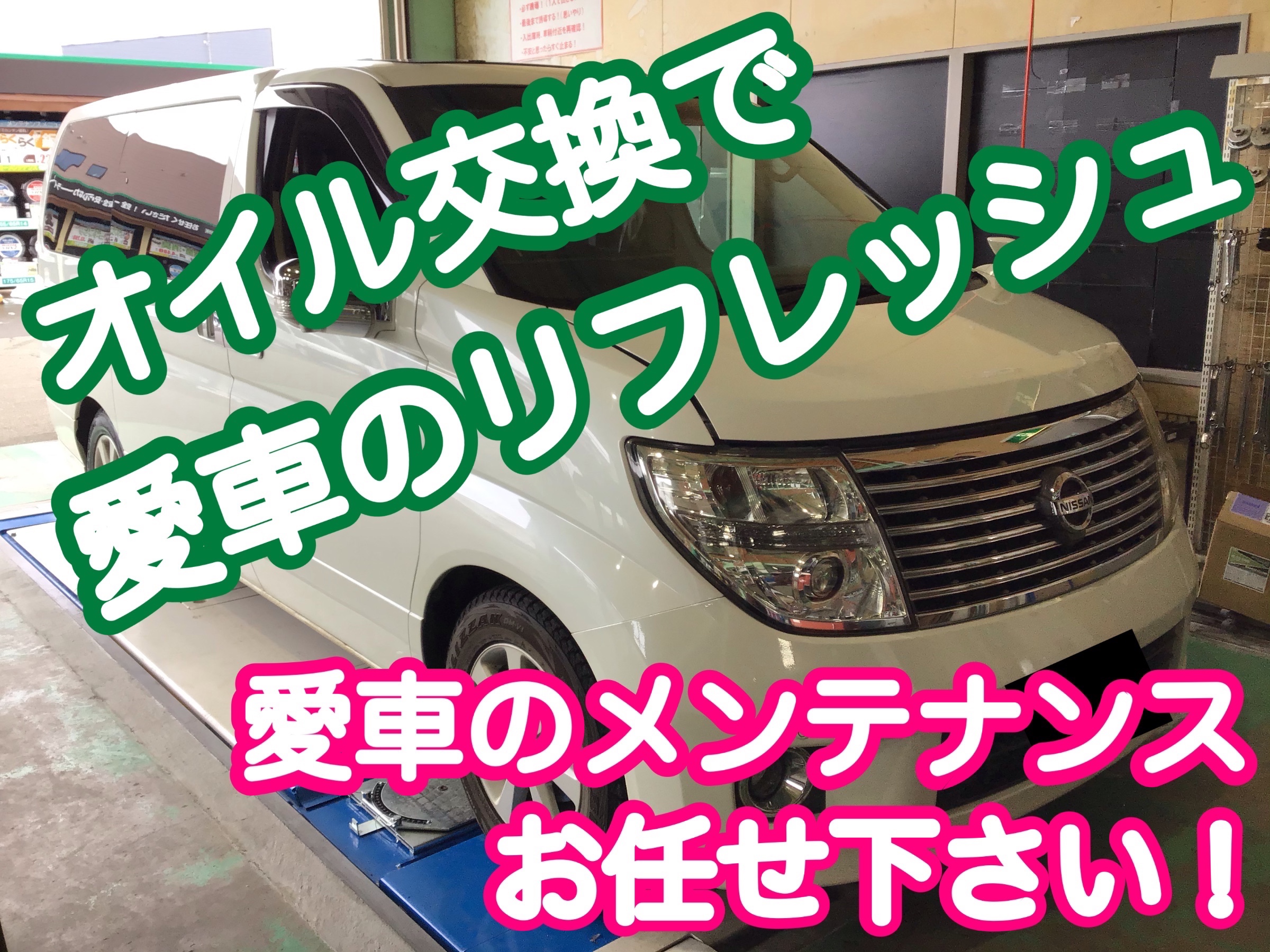 【日産 エルグランド】エンジンオイル交換で愛車のリフレッシュ!!