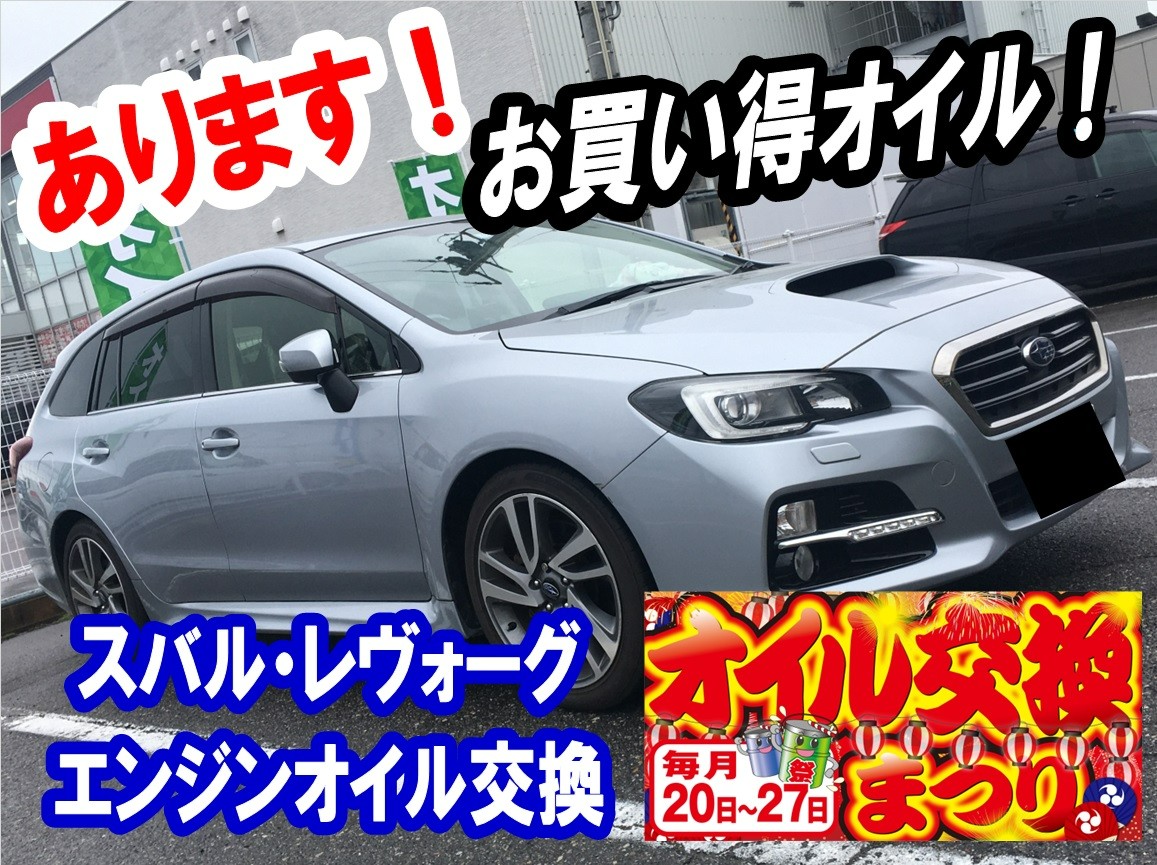 【スバル・レヴォーグ/オイル交換】オイル交換まつり開催中!お買得オイルあります!