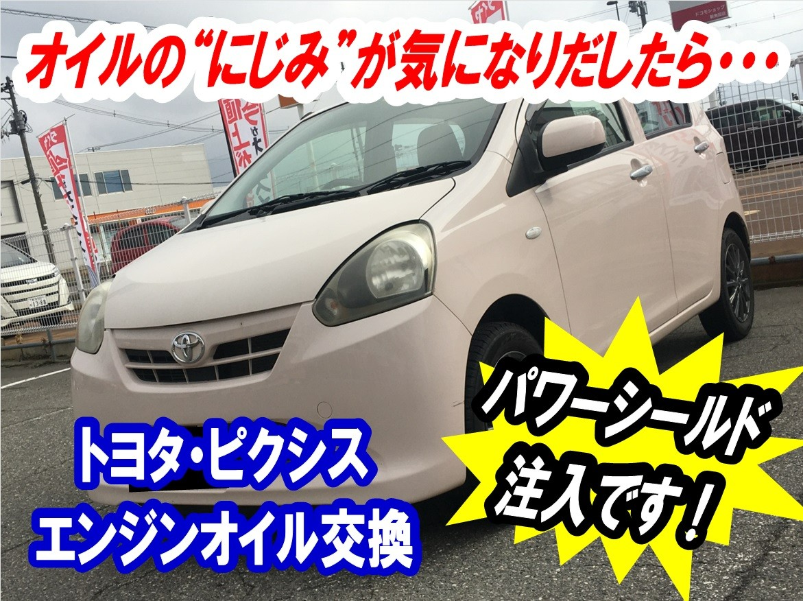 【トヨタ:ピクシス/エンジンオイル交換】オイルのにじみが気になりだしたら・・・オイル&添加剤で対策します!