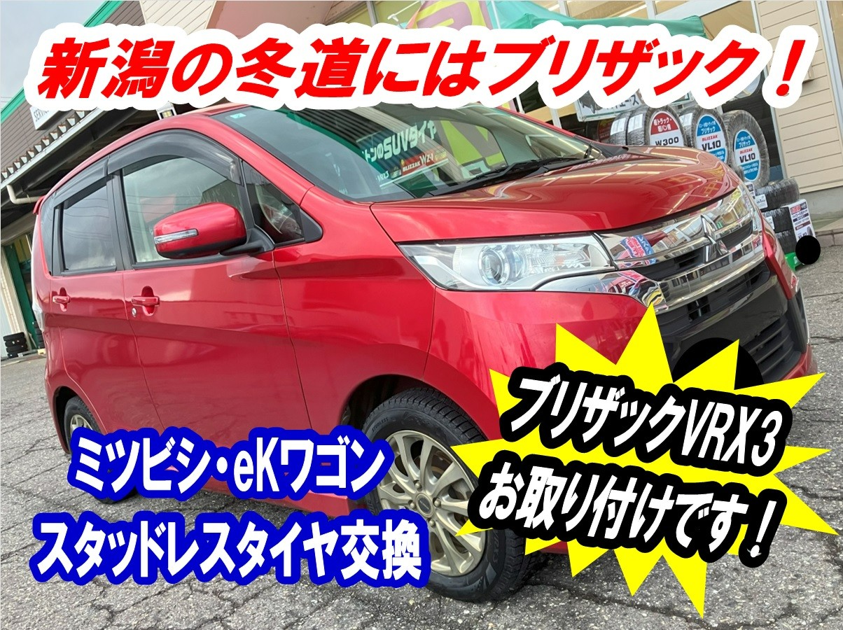 【ミツビシ:eKワゴン/スタッドレスタイヤ交換】新潟の冬道にはブリザックがオススメです!