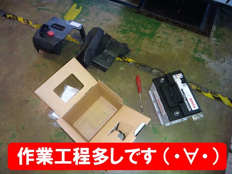 バッテリー交換ですが、日本車とは違う作業工程に四苦八苦しました(´・ω・`)