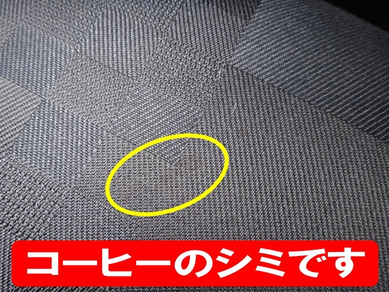 シートには、こぼしてしまったコーヒーのシミが・・・