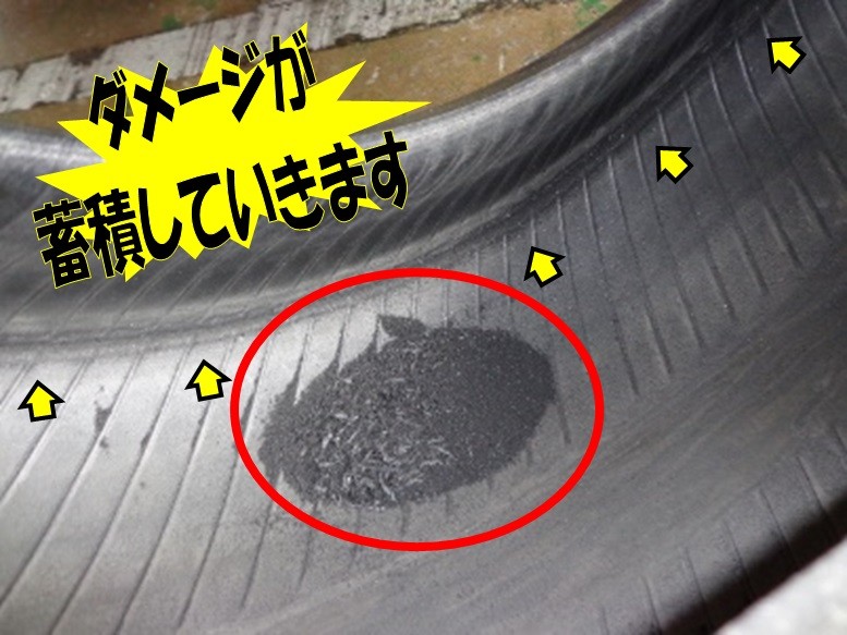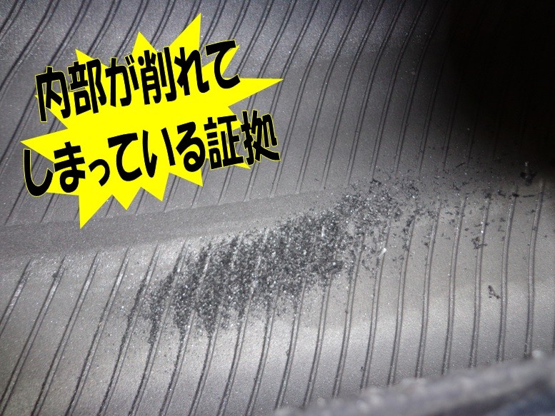 するとこのように、タイヤ内部では削れて出たゴムの破片や