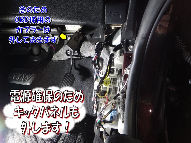 電源線取り回しのために、今回は運転席下から電源を確保します。