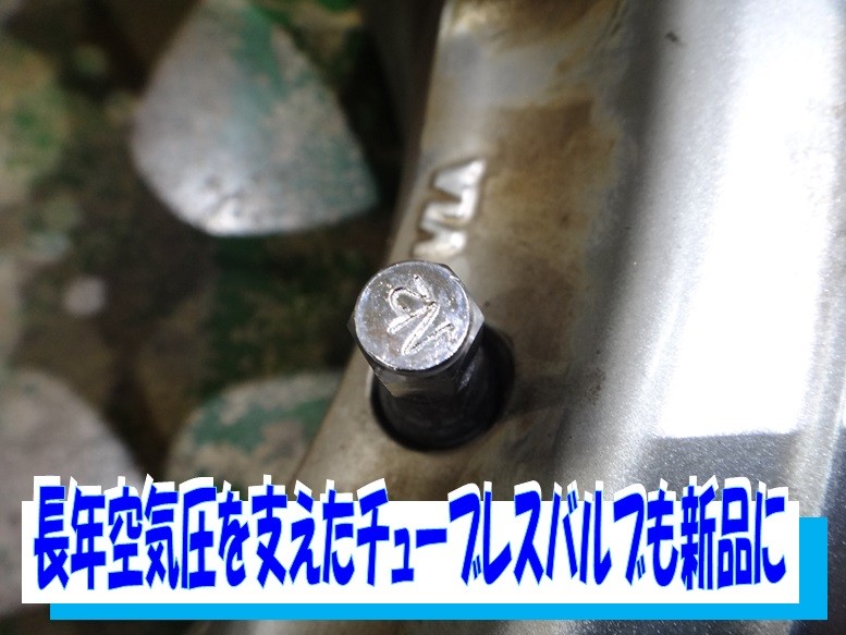 空気圧を支える、充填する部分である、チューブレスバルブも新品に。