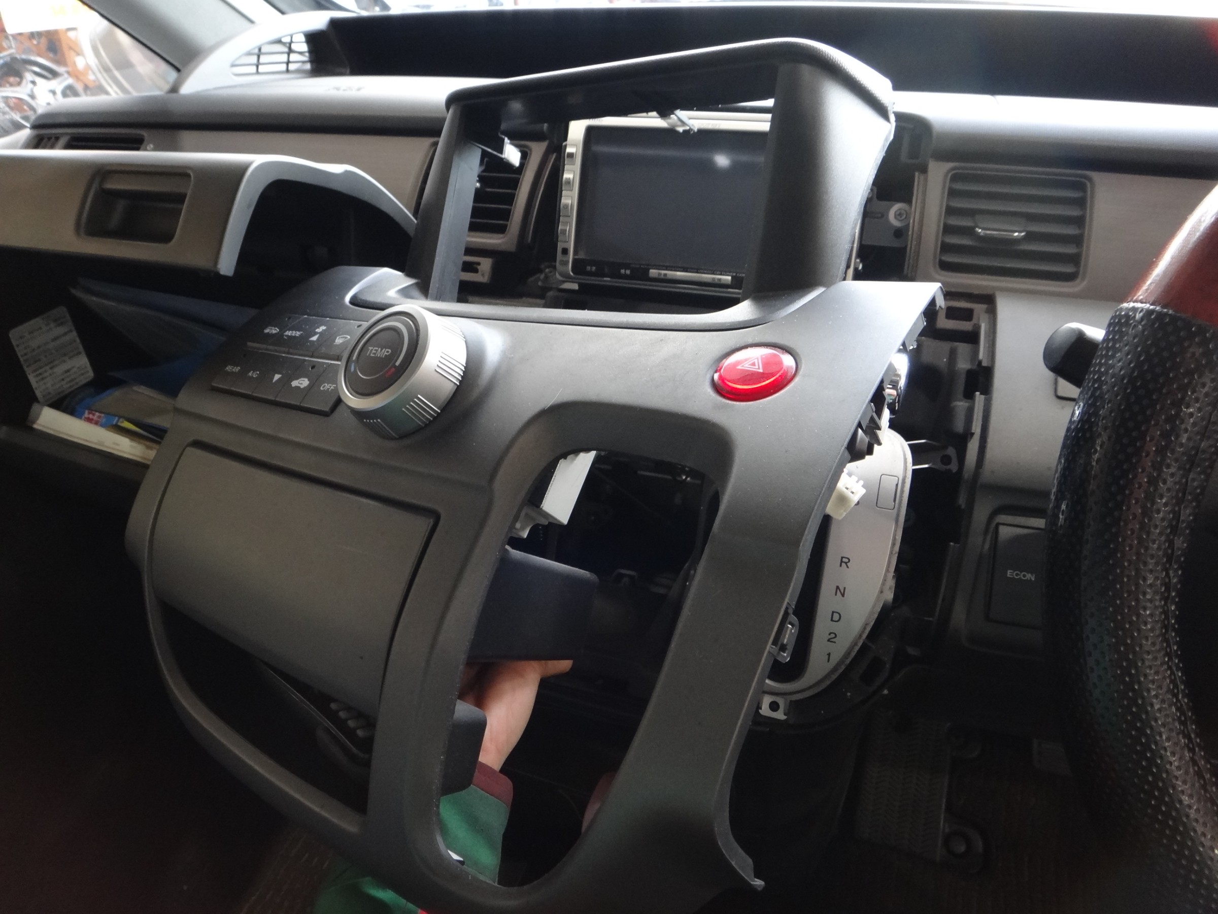 電源周りの配線のため、ナビ・エアコン周りのパネルを外します