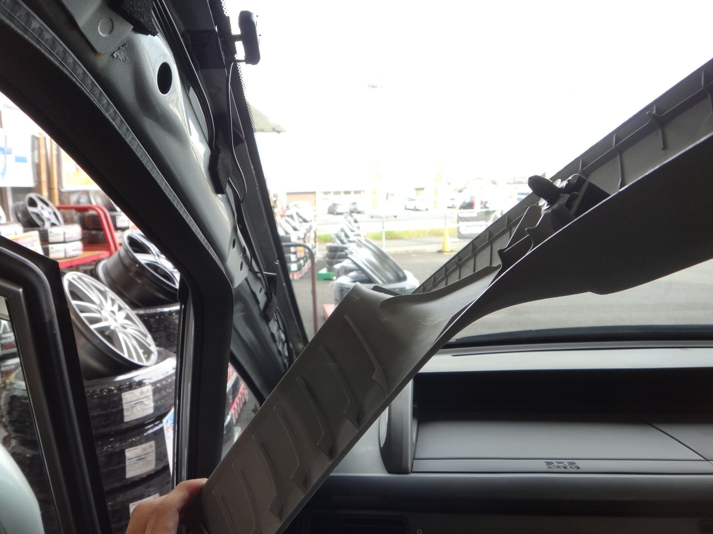 カーテンエアバッグがない車種は、ウェザーストリップを剥がしたあと