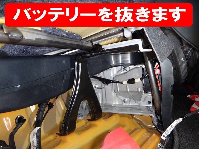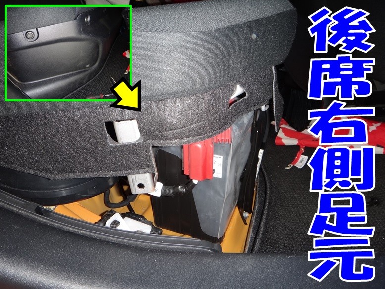 まずはバッテリーチェック! 後席右側足元に隠れています