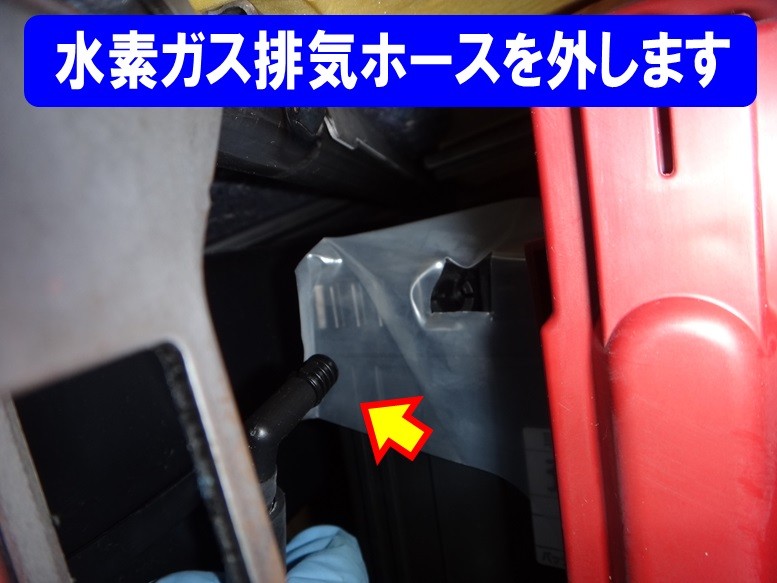 先に、水素ガス排気ホースを抜いておきます