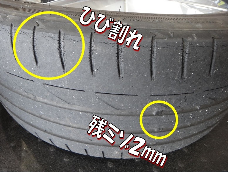 サイド部のひび割れはありませんが、接地面のゴムにひび割れが見られます