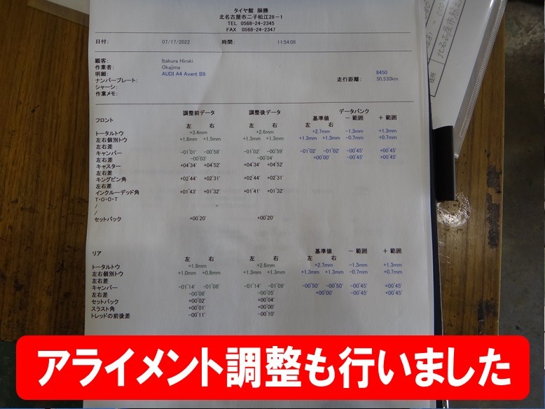 【輸入車もおまかせ!】アウディA4(B9) 「タイヤ交換&アライメント調整」