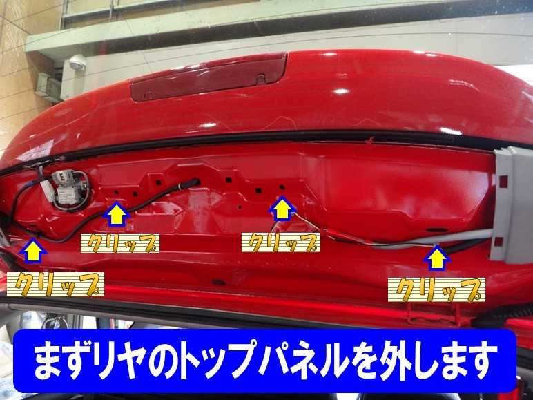 リヤガラス周りの内張りパネルの中で、トップ部の樹脂パネルだけ独立して外れるうえ