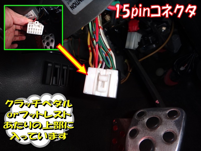 このBH型レガシィは、ハンドルコラム下に15pinオプションカプラーがあります。