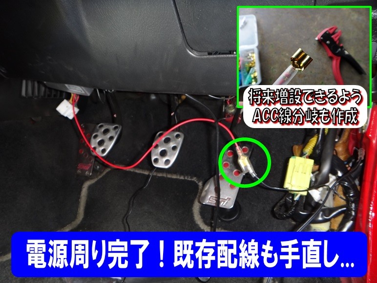 次回の電源確保の負担軽減を考えて、確保したACC線に分岐端子を作成しておきました。