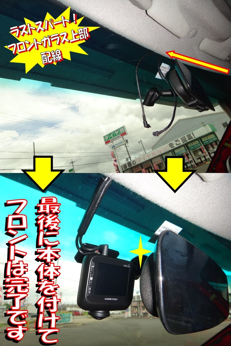 フロント上部の配線通しもして~、ドライブレコーダー本体も取り付け!
