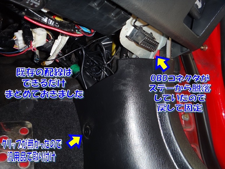 OBDコネクタも固定ステーから外れて、宙ぶらりになっていたので・・・