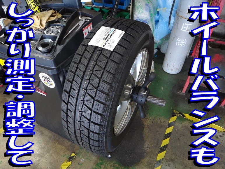 ホイール内の重量差を埋める「ホイールバランス調整」を行います。