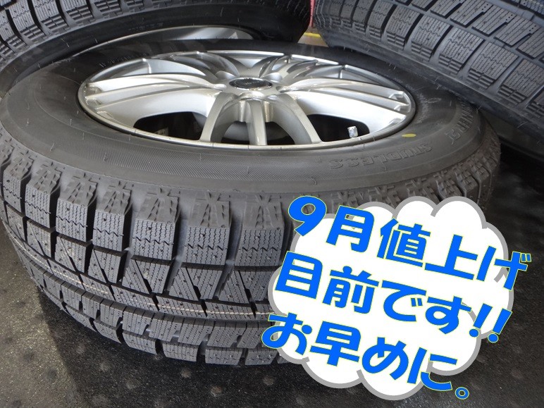 スタッドレスタイヤも値上がりしますので、購入のご検討はお早めに!