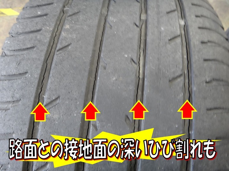 2mm~3mmという溝の深さもそうですが、何より”ゴムのひび割れ”が顕著。