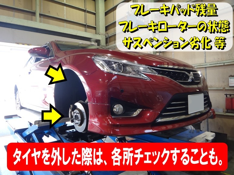 交換の際はタイヤを外すので、ブレーキパッドの残量やブレーキローターの減り具合