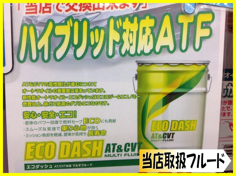 当店では、AT・CVT両方に対応した「エコダッシュ マルチフルード」を使用!