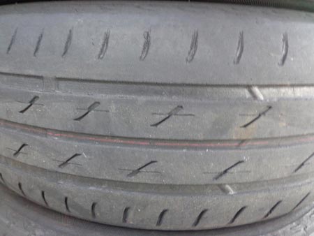 今まで装着のタイヤは左右フロントが外減りをしていましたが、