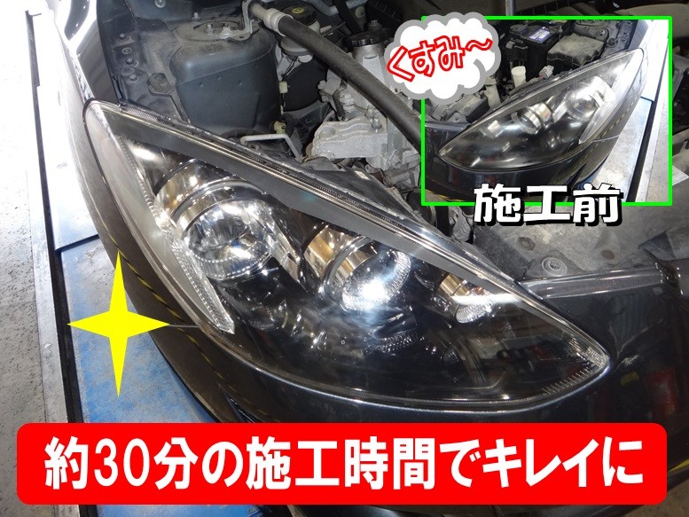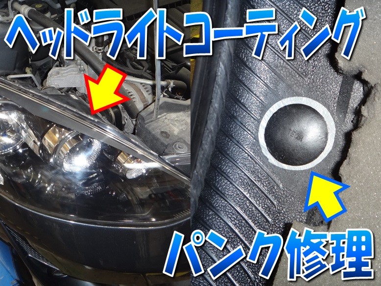 当店自慢の「ヘッドライトコーティングと、パンク内面修理」です